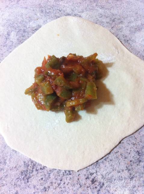- Posar la verdura als tres trossos i tancar-los en forma de panet.